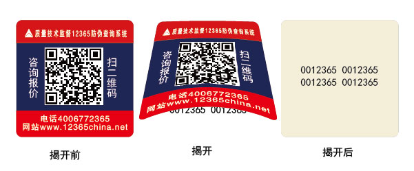 揭開(kāi)式防偽標(biāo)簽應(yīng)用非常廣泛,可起到標(biāo)簽防轉(zhuǎn)移作用,標(biāo)簽被揭開(kāi)時(shí),防偽密碼會(huì)留在產(chǎn)品上面。